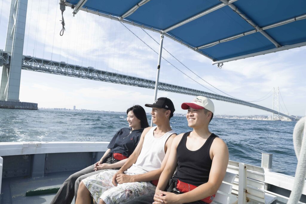 世界最大級の吊り橋「明石海峡大橋」の下をくぐったり、淡路島の観光名所を海から眺めたり、